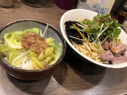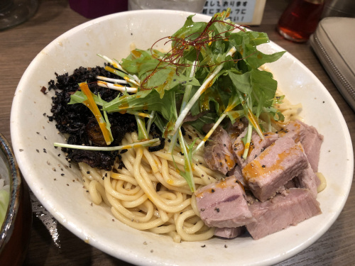 野菜と焦がしねぎの効いたヘルシーさもある油そばです。