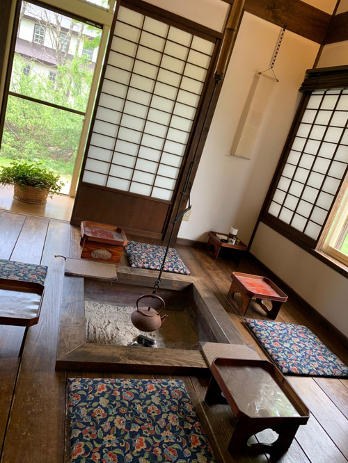 落ち着いた内装でなんと囲炉裏もあります。