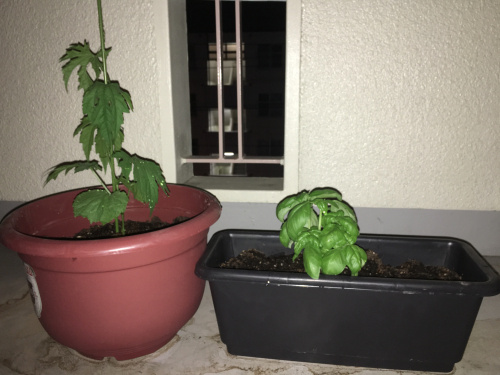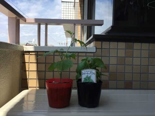 ゴーヤ君とバジル君が初めて我が家へやってきました。