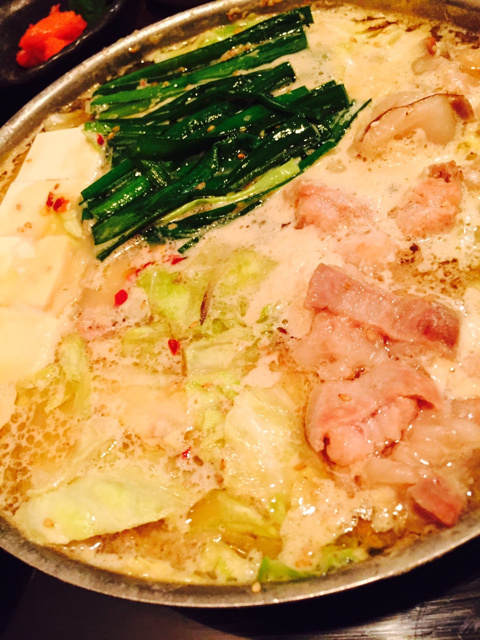 もつのこりこりとした食感、ニラと白菜の組み合わせ