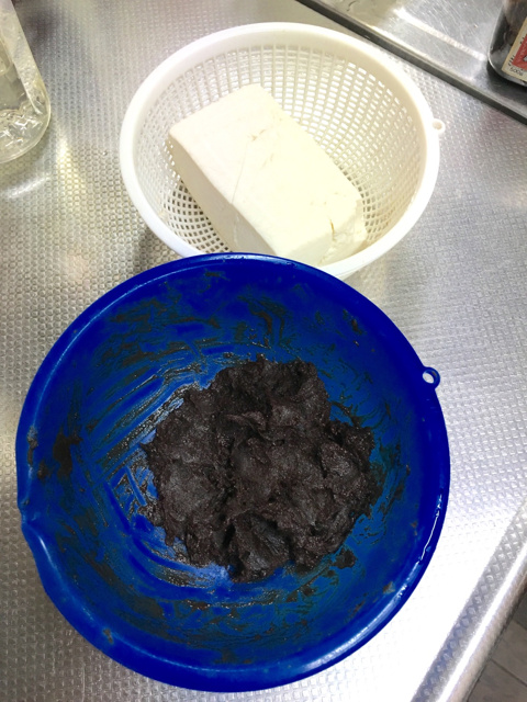 そして出来たペースト状の味噌を豆腐に
