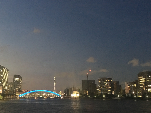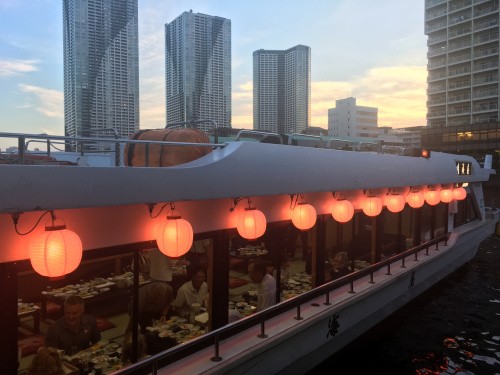 勝どき橋から「晴海屋」さんの船に乗船して、 美味しい料理をいただいてまいりました。